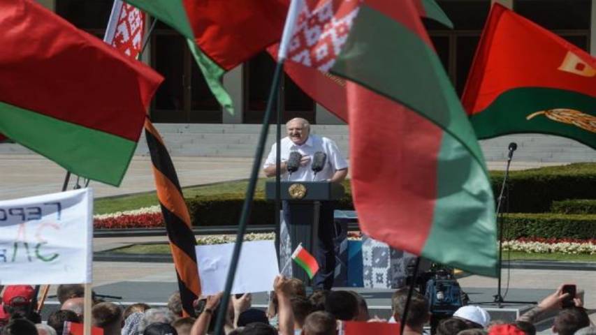 El presidente de Bielorrusia, Alexandr Lukashenko, afirmó hoy en Minsk que «ni muerto» permitirá la entrega del país, en el primer mitin en su apoyo desde el estallido de la ola de protestas populares que sacuden el país desde hace ocho días.