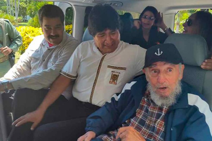 Medios locales reseñaron que líder cubano prefirió no esperar a Morales en su casa y por el contrario, convidó a Maduro a llegarle de forma inesperada a Morales, por lo que no dudaron en subirse a una vagoneta y trasladarse hasta el hotel La Laguna; donde muy sonriente recibió a Castro.
