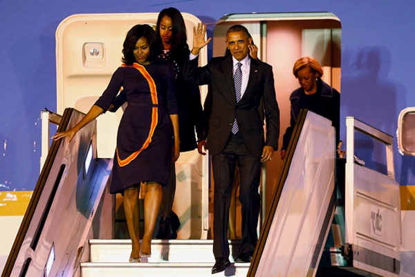 Obama arribó a Buenos Aires procedente de Cuba, acompañado de su familia y cientos de funcionarios, asesores y guardaespaldas. La capital argentina se encuentra blindada para proteger al mandatario en su visita de dos días.