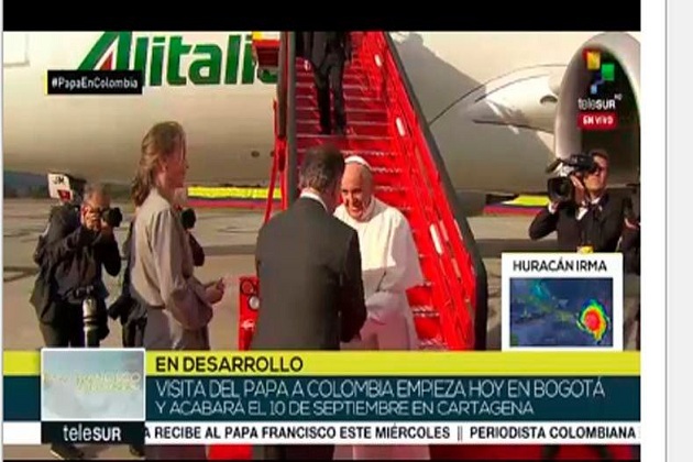 El pontífice argentino, de 80 años, bajó las escaleras del avión a las 16H36 (21H36 GMT) en el aeropuerto militar Catam de Bogotá, donde inicia un histórico viaje de cinco días que incluirá actos y misas multitudinarias en cuatro ciudades.