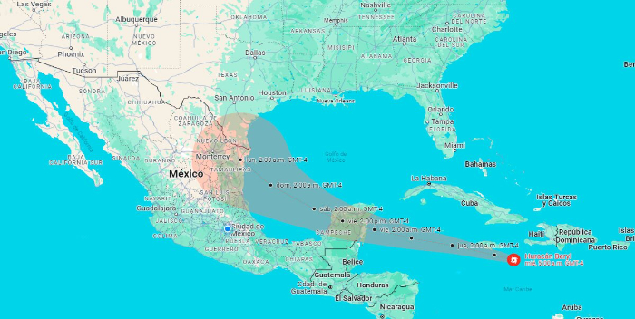 Pese a un posible debilitamiento, se pronostica que Beryl siga siendo un huracán en el noroeste del Caribe hasta que desembarque en la Península de Yucatán el jueves o temprano en la mañana del viernes.