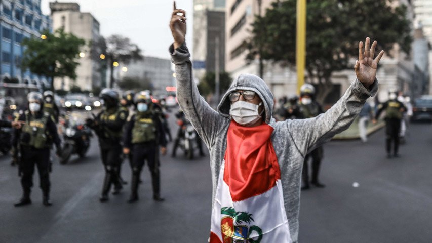 Persisten protestas en Perú por salida de Vizcarra