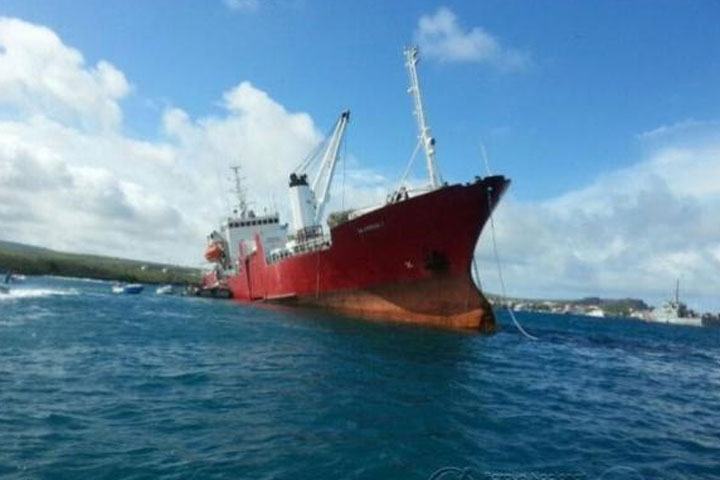 La nave, de la que hay fuga de contaminantes, se atascó con unas 1.400 toneladas de carga, que incluye víveres y sustancias peligrosas como 10.000 galones de combustible, 11 toneladas de aceite de piñón, 103 cilindros de gas de uso doméstico y 48 toneladas de emulsión asfáltica.