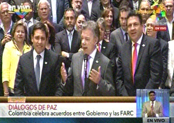 «Como jefe de Estado y como comandante en jefe de nuestras fuerzas armadas he ordenado el cese al fuego definitivo con las FARC a partir de las cero horas del próximo lunes 29 de agosto», dijo Santos.