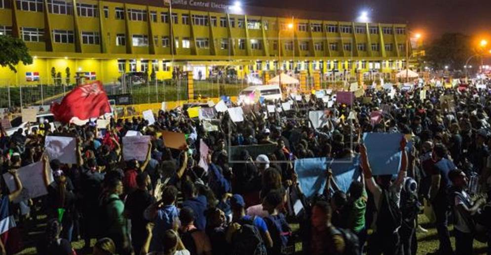 En la capital, miles de personas vestidas de negro se congregaron frente a la sede de la Junta Central Electoral (JCE), en una concentración de mucha mayor envergadura que las registradas el lunes y martes, días en los que hubo protestas pero de menor magnitud