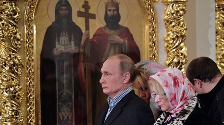 Vladimir Putin realizó este discurso en una iglesia del siglo XVIII de San Petersburgo donde su padre fue bautizado, precisó el comunicado. Al término de la ceremonia ofreció a la iglesia una imagen del siglo XIX.