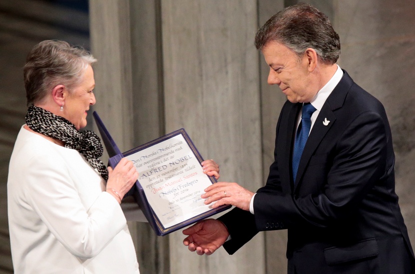 El presidente colombiano, Juan Manuel Santos, recibió el premio Nobel de la Paz como reconocimiento por el tratado de paz que puso fin al medio siglo de conflicto entre el gobierno español las Fuerzas Armadas Revolucionarias de Colombia (Farc).