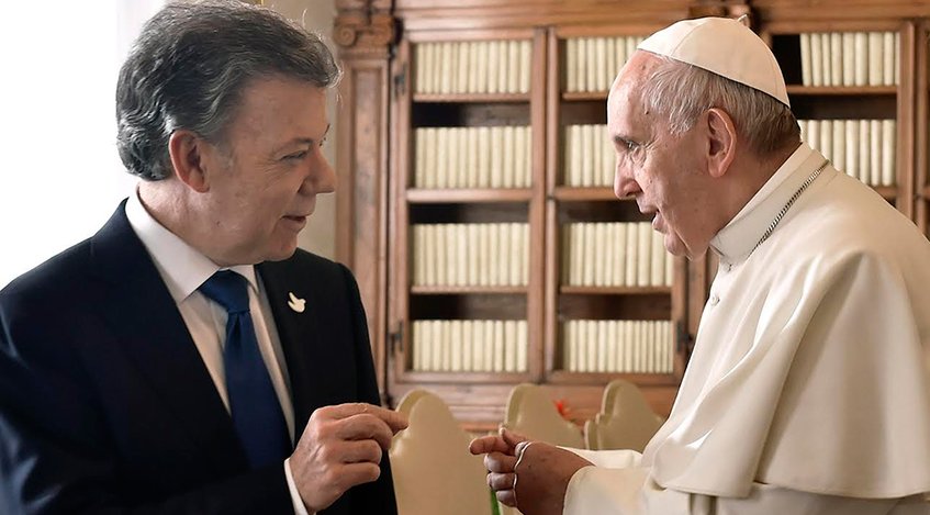 «Agradezco enormemente que el Papa ahora haya decidido venir a Colombia a decirnos a todos los colombianos, a todos, porque él no está haciendo ninguna distinción, que tenemos que unirnos, reconciliarnos, dejar atrás los odios, el resentimiento, la sed de venganza», manifestó Santos en la inauguración de unas obras en la localidad Corrales, en el departamento Boyacá (centro).