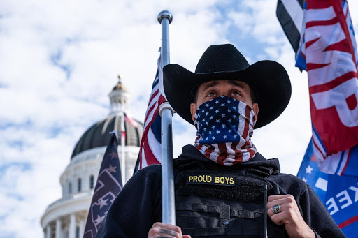Decenas de miembros del grupo de extrema derecha Proud Boys, vestidos de negro y algunos con cascos y chalecos antibalas, estaban entre los manifestantes. Algunos grupos de izquierda planearon contramanifestaciones, pero no hubo informes de incidentes importantes de parte de los medios.