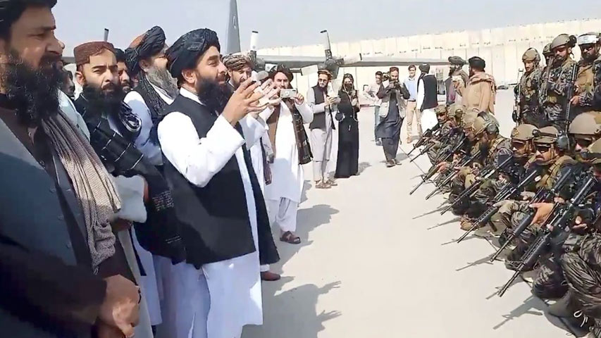 Mujahid se dirigió a sus combatientes, a quienes felicitó por sus sacrificios que han supuesto durante el último mes una victoria tras otra, con la toma primero en algo más de dos semanas de casi todo el territorio afgano, culminado el 15 de agosto con la conquista incruenta de Kabul, y ahora con la retirada total estadounidense.