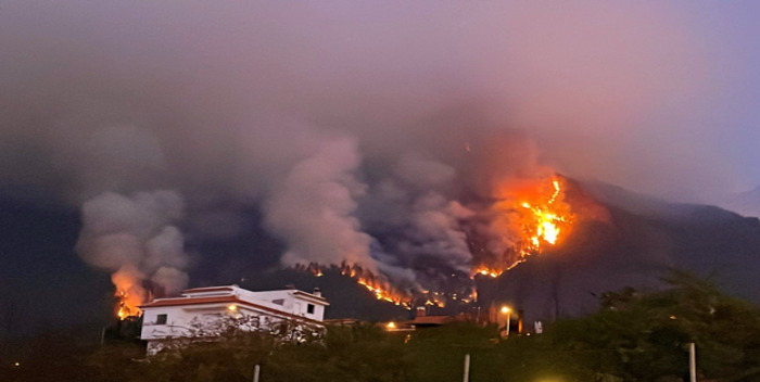 La presidenta del Cabildo, Rosa Dávila, ha subrayado que es «un perímetro «muy grande» y el incendio está «fuera de la capacidad de extinción a pesar de incorporar más medios terrestres y aéreos».