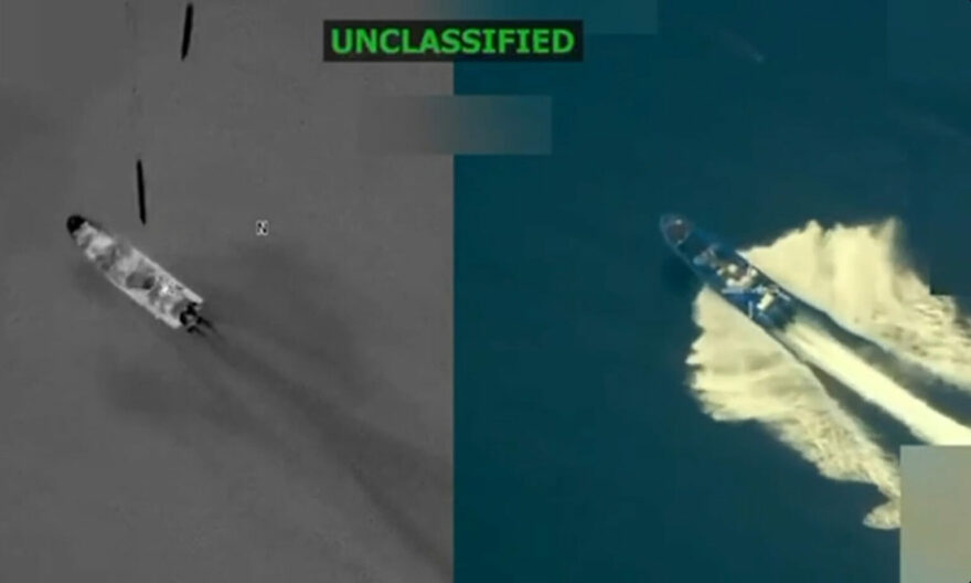 Difundió, como en operativos previos, un video sin sonido en el que se observa la lancha azul antes de ser alcanzada por un proyectil que la hace estallar.