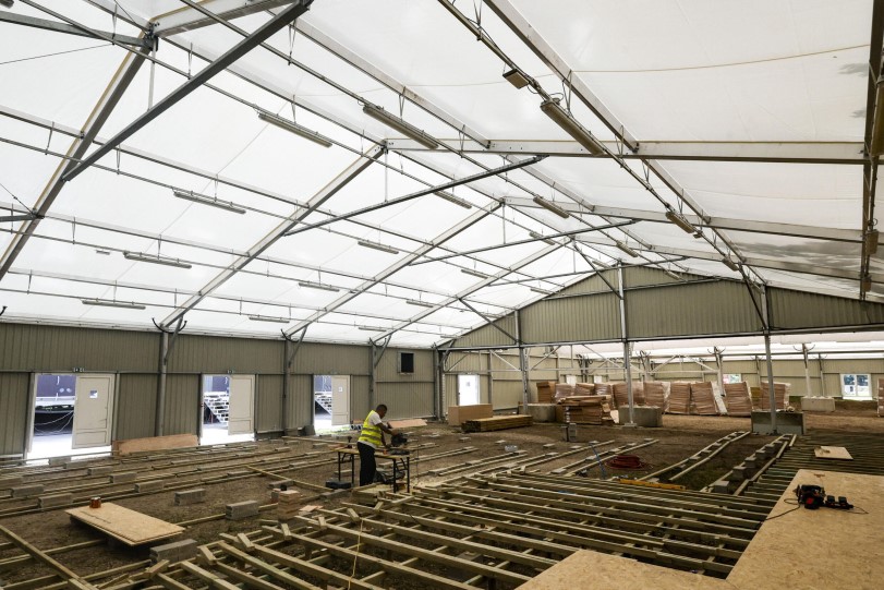 Un campamento militar gigante, con barracones prefabricados y camillas para dormir, se está construyendo contra reloj en el este de París para albergar a 4.500 soldados durante los Juegos Olímpicos.