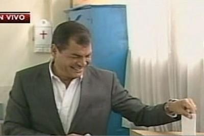Luego de haber sido inaugurado las 07H00 (12H00 GMT) de manera oficial el proceso electoral en Ecuador el candidato a la Presidencia, Rafael Correa,ejerció su derecho al sufragio este domingo en la escuela San Francisco de la provincia de Guayas (suroeste).