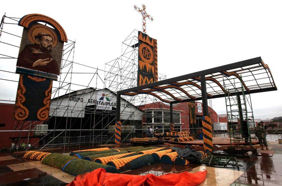 La estructura, de más de 25 metros de alto por 14 de ancho, y que lleva dos meses en preparación, fue trasladada el domingo desde la pequeña ciudad de San Ignacio, en el departamento de Misiones, a unos 230 kilómetros de Asunción, mientras los vecinos se agolpaban a los lados del camino para despedir la obra, dijo a Efe Ruiz.