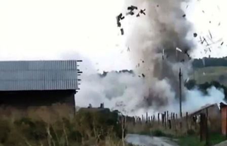 Un video muestra cómo la enorme explosión de sus bombas arrancó el techo de la construcción. Nadie más resultó herido por los estallidos.