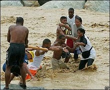 Las precipitaciones aún continúan y los deslaves ya han dejado pueblos destruidos a su paso. 11 estados del país se encuentran afectados por el fenómeno climático, las zonas más afectadas corresponden al estado costero de Vargas. Las precipitaciones acumuladas alcanzan los 1.200 mm en dos semanas y la increíble cantidad de 1.700.000 metros cúbicos de lodo y sedimentos son arrastrados por los caudales de lo ríos hasta las costas.