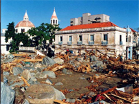 Como es lógico, las poblaciones se ubicaron desde la época colonial en esos conos de deyección, que son las áreas con menores pendientes en la zona. Pero precisamente por este hecho, la destrucción se incrementa al irse acumulando todos los materiales acarreados por los ríos al perder velocidad sus aguas.