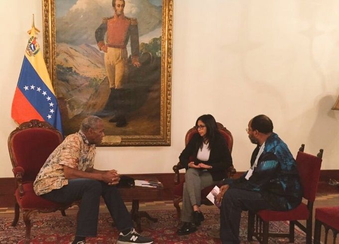 La canciller de la República, Delcy Rodríguez, se reunió este martes 7 de marzo en Caracas con representantes de la comunidad afroestadounidense, el actor Danny Glover y James Early.