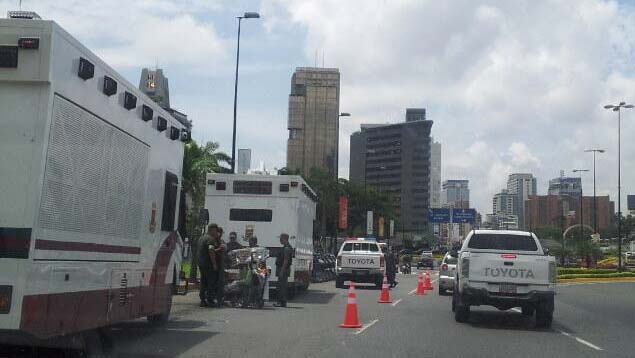 En los alrededores de la Universidad Central de Venezuela, Plaza Venezuela y la autopista Francisco Fajardo se encuentran desplegados grupos antimotines de la Guardia Nacional y la Policía Nacional Bolivariana, así como gran cantidad de motos y varias tanquetas.