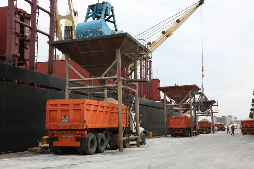 Los barcos fondeados se encuentran en este momento en proceso de descargo de 30.000 TM de azúcar cruda, 60.000 TM de arroz paddy, 60.000 TM de trigo panadero, 10.000 TM de aceite crudo de soya y 30.000 TM de torta de soya.