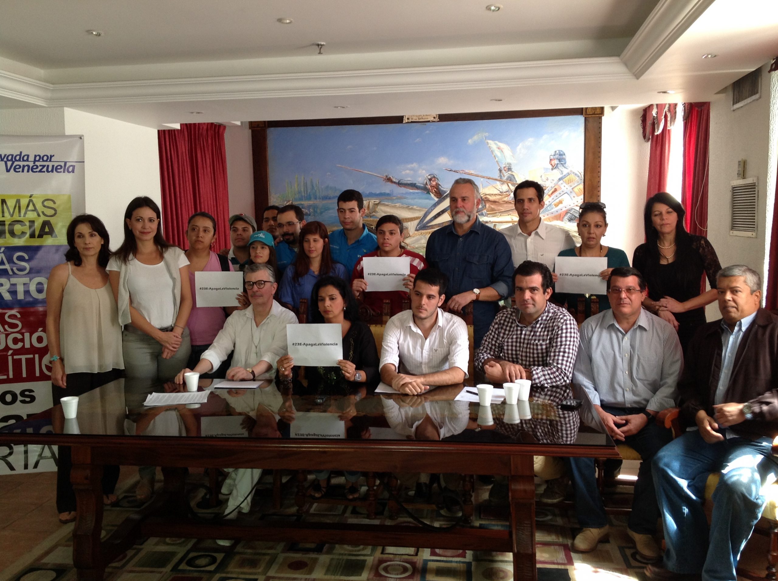 Este martes artistas, ONGs, estudiantes y diputados de la Asamblea Nacional, que forman parte de La Movida Parlamentaria, ofrecieron una rueda de prensa para invitar a los venezolanos a sumarse a la actividad «Apágale la luz a la violencia» el próximo 23 de enero. En la conferencia de prensa estuvieron presentes los actores Javier Vidal, Julie Restifo y Nacarid Escalona; Daniel Álvarez y Gaby Arellano por los estudiantes, Alfredo Romero director del Foro Penal Venezolano y los diputados Eduardo Gómez Sigala, Luis Barragán, Carlos Berrisbeitia, Juan Guaidó, María Corina Machado y Deyalitza Aray.