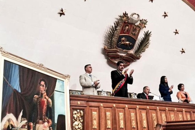 Seguidamente, el presidente de la AN aperturó la sesión especial. Durante la entonación del Himno Nacional, dispararon cañones de salva desde El Calvario.