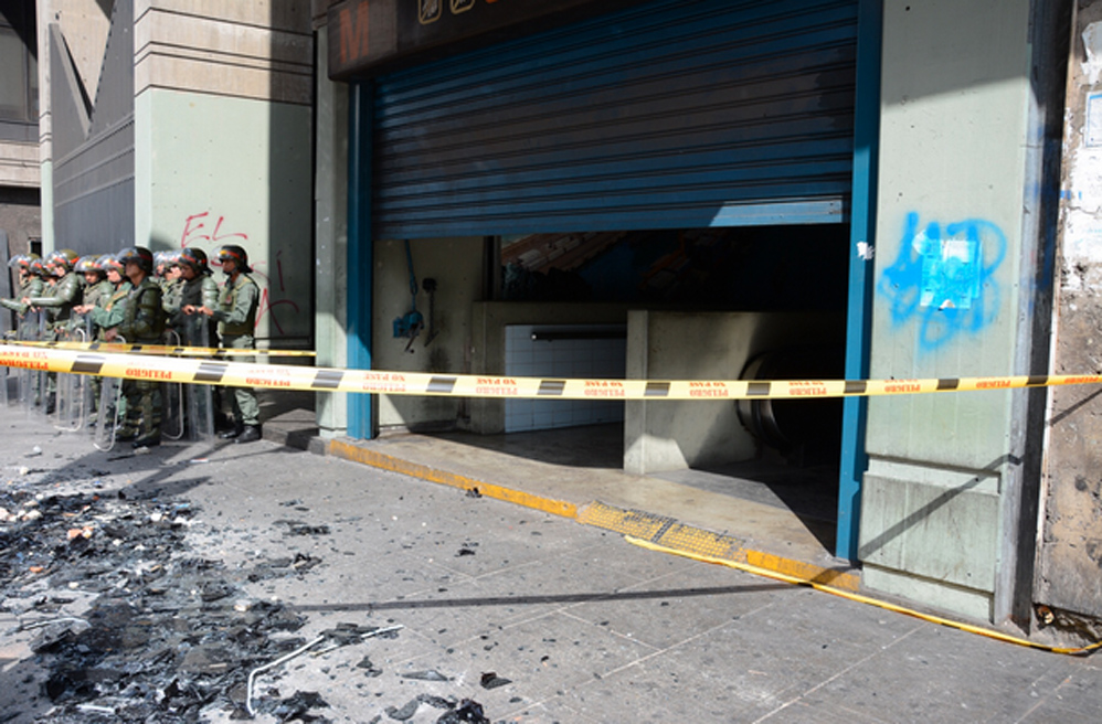 Estas imágenes forman parte de los destrozos que dejaron ayer un grupo de personas en las adyacencias de la Magistratura de la República, Banco de Venezuela y el sistema de metrobús en Altamira y Chacao