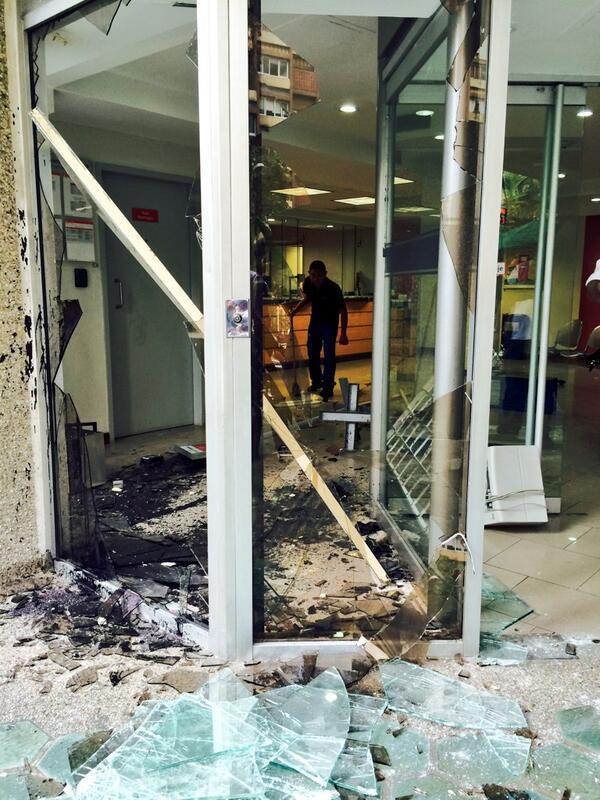 ÚN.- La agencia del Banco de Venezuela ubicada cerca del Centro Plaza, en la Av. Andrés Bello con primera transversal de Los Palos Grandes, fue atacada la noche del lunes durante las protestas en el municipio Chacao.