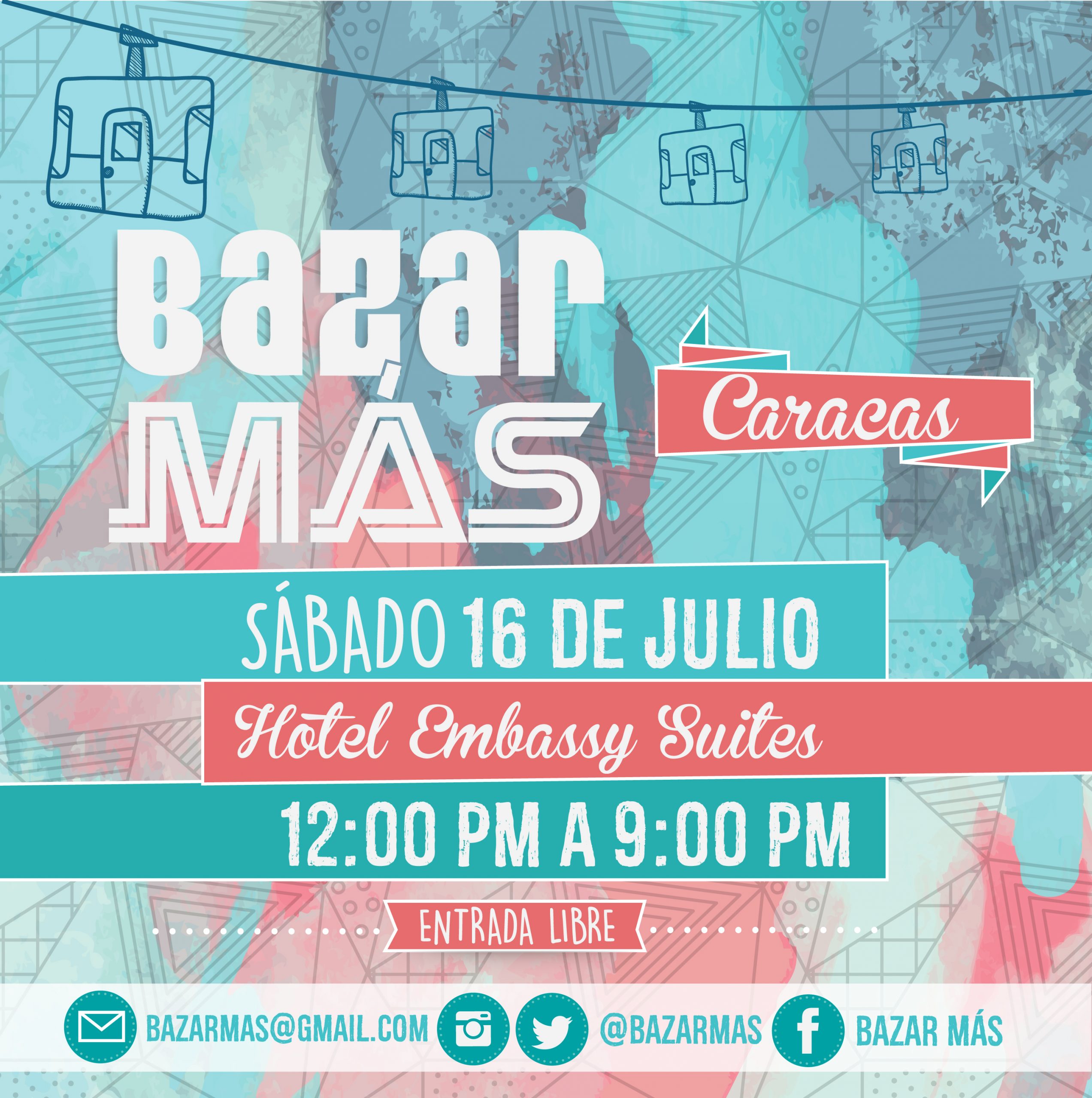 Este año Bazar Más inició su proyecto #BazarmasRecorreVenezuela y regresa a la capital para contagiarnos de talento venezolano en su segunda edición: «Bazar Más Caracas». El sábado 16 de Julio a partir de las 9 de la mañana en el Hotel Embassy Suites se darán cita las mejores marcas de diseño venezolano de ropa, accesorios, orfebrería, gastronomía, moda infantil, hogar y mucho más, Johana Cruz comunicadora Social y también fundadora del proyecto nos apuntó “En nuestros eventos buscamos realzar el talento venezolano, para que el público se enamore y quede cautivado con lo hecho en nuestro país”