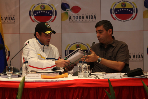 Capriles se reunió por más de ocho horas el fin de semana con el ministro del Interior, Miguel Rodríguez, Capriles y Rodríguez discutieron estrategias contra el crimen, en un diálogo criticado por el ala más radical de la oposición. A esto, Capriles apunta: «si tengo que ir al infierno y reunirme con el diablo por la seguridad de nuestro pueblo, yo lo voy a hacer».