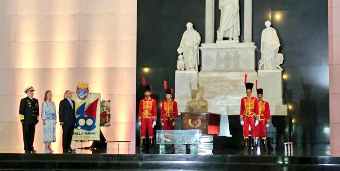 Durante su discurso, Ceballos resaltó que la Batalla Naval del Lago de Maracaibo, que libró la Armada de la Gran Colombia, fue uno de los más importantes combates para la emancipación y la Independencia, “y que despejó el camino para la Campaña del Sur y con ella erradicar finalmente el poder español en Suramérica”