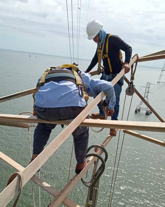 Las maniobras fueron realizadas por 13 linieros y dos supervisores para mantener operativo este vínculo de transmisión de energía hacia la Costa Occidental del Lago, que contribuye a mayor confiabilidad a la línea de transmisión en el cruce del Lago de Maracaibo.