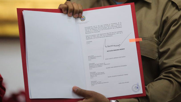 En Gaceta Extraordinaria número 6.178, de fecha 15 de marzo de 2015, fue publicada la autorización para que el presidente de la República, Nicolás Maduro, dicte decretos con rango, valor y fuerza para garantizar la soberanía nacional.