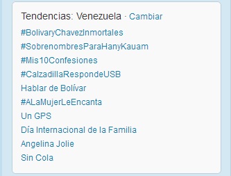 También, Abraham Graterol (@abrahamgraterol) utilizó la etiqueta para expresarse a través de la red social. «#BolivaryChavezInmortales ahora más que nunca, con ese resurgir bolivariano, vivirán por siempre esos gigante de la patria».