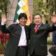 Según información ofrecida por Globovisión, el presidente de Bolivia, Evo Morales, visitó a la familia del Presidente de Venezuela, Hugo Chávez, en compañia del Vicepresidente Nicolas Maduro.