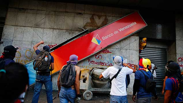 Durante las manifestaciones acaecidas este domingo en Chacao, encapuchados atacaron la sede del Banco de Venezuela, ubicada en la avenida Francisco de Miranda con calle Elice, ocasionando destrozos en el lugar.