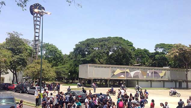 Un grupo de estudiantes de diversas escuelas de la Universidad Central de Venezuela (UCV) protestan desde inicios de la tarde de este lunes frente al Rectorado de esa casa de estudios.