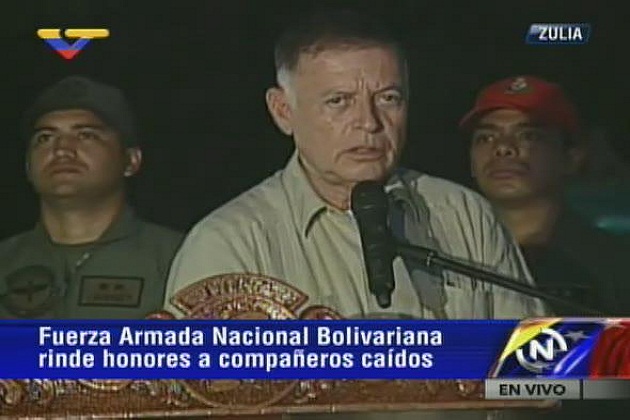 El gobernador del Zulia, Francisco Arias Cárdenas, y el Alto Mando Militar de la entidad, rinden honor a los capitanes de la Aviación Militar, caídos al precipitarse un avión de la Fuerza Área Venezolana en la frontera colombo-venezolana.