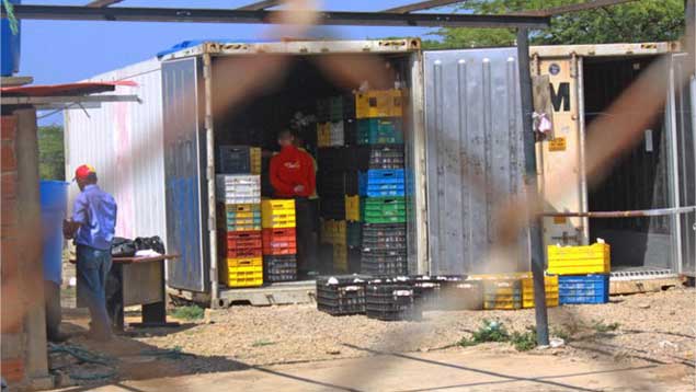 Este sábado en horas del mediodía funcionarios de los organismos de seguridad regionales y fiscales de la Superintendencia de Precios Justos (Sundde) se encontraban en el lugar realizando revisiones en los container donde estaban las cestas de pollo.