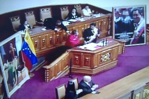 En la gráfica se aprecia cuando el presidente de la Asamblea Nacional, Diosdado Cabello, se lanza sobre la mesa en un intento por detener al sujeto.