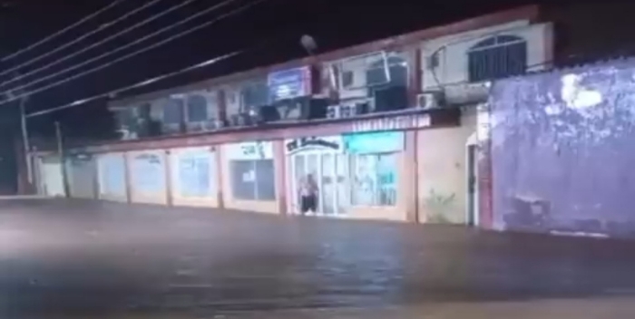 Díaz publicó algunos videos en la red social Twitter, donde se observan las inundaciones y algunos bienes afectados por las lluvias.