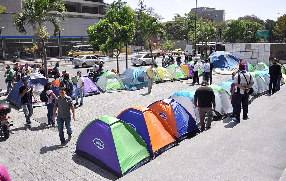 Los manifestantes que se mantienen en carpas en las adyacencias de la sede la Organización de Naciones Unidas (ONU) amanecieron este martes con las carpas en plena avenida Francisco de Miranda.