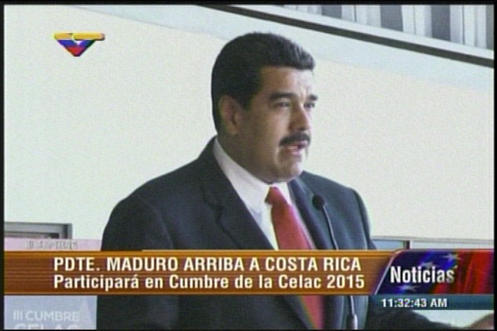 El presidente de la República, Nicolás Maduro, arribó este miércoles a Costa Rica para asistir a la III Cumbre de la Comunidad de Estados Latinoamericanos y Caribeños (Celac) que se realiza en ese país.