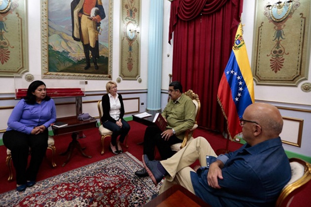 El presidente de la República, Nicolás Maduro, sostuvo una reunión este sábado con la Fiscal General de la República, Luisa Ortega Díaz en el Palacio de Miraflores. En el encuentro la fiscal le entregó al primer mandatario nacional el trabajo titulado “Contra el Silencio y el Olvido. Por la Verdad y la Justicia”.