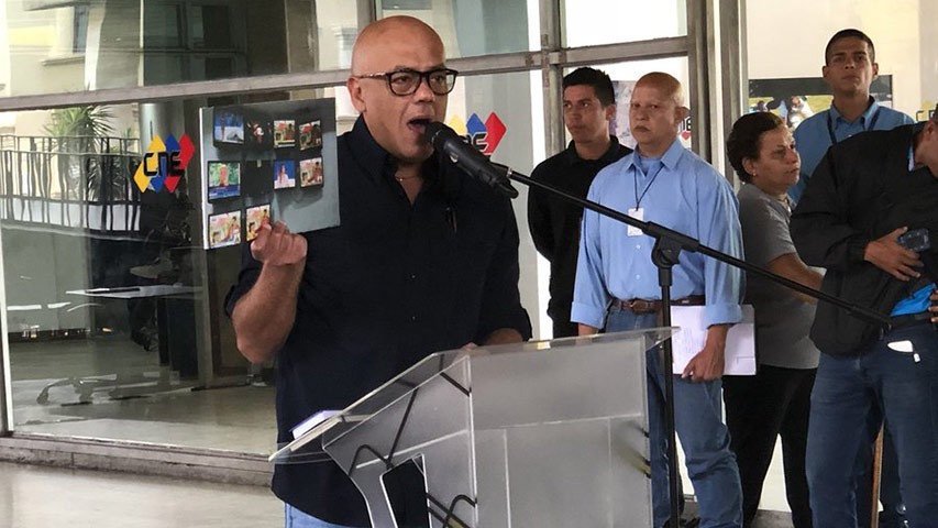 El ministro de comunicación e información, Jorge Rodríguez rechazó los llamados a la abstención hechos por algunos sectores de oposición y la postura de la Unión Europea (UE) y otras naciones a no reconocer los comicios del 20 de mayo.