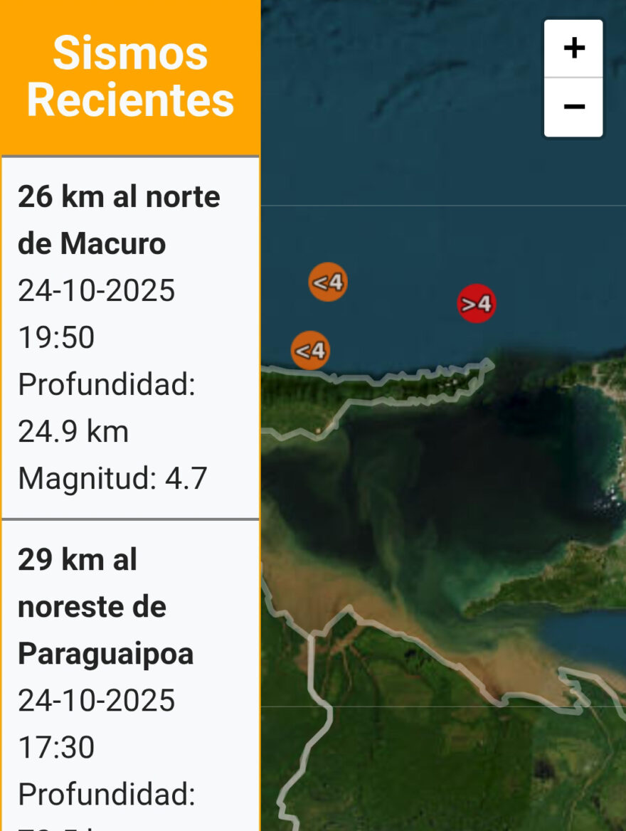 Sismo Previo en Oriente: Apenas horas antes, Funvisis registró otro evento en el mismo estado, con una magnitud de 2.9 en Güiria, Sucre.