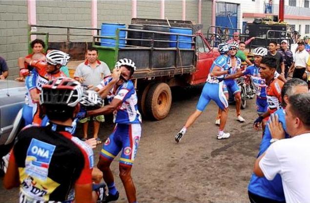 Una fuerte pelea entre corredores rusos y venezolanos, que se acusaban de la caída en ruta de seis participantes de la Vuelta al Táchira, que el lunes cumplió su tercera etapa, quedó bajo la lupa de los comisarios de la Unión Ciclista Internacional (UCI) aunque no produjo sanciones.