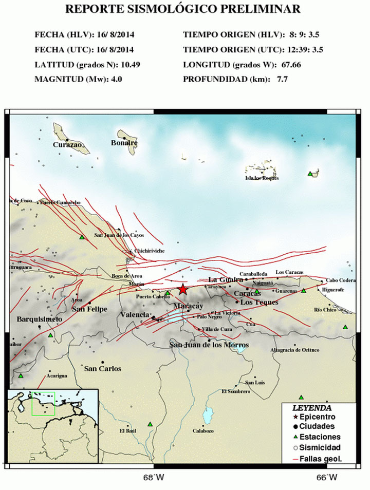 #Sismo:2014/08/16 8:09 (HLV), Mag. 4.0 Mw, a 28 Km al norte de Maracay (10.493 N,67.664 W), prof. 7.7 Km