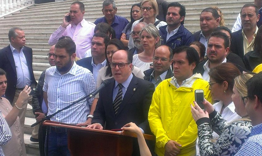 El presidente de la Asamblea Nacional (AN), Julio Borges, junto a la directiva de este organismo, manifestó este jueves que el «mundo entero está solicitando elecciones y democracia en Venezuela».